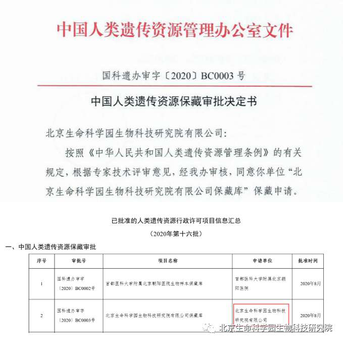 北京生命科學(xué)園生物科技研究院(以下簡稱“北京生物樣本資源庫”)(Biobank of Life Science Park,簡寫“BoLSP”)是一家由北京市科委和中關(guān)村生命科學(xué)園共同支持設(shè)立的第三方生物樣本庫公共服務(wù)平臺,秉承北京重大疾病臨床數(shù)據(jù)和樣本資源庫(以下簡稱“北京庫”)(Beijing Biobank of Clinical Resources,BBCR)十余年的發(fā)展成果,聚合眾多臨床樣本專家的專業(yè)共識,致力于在生命科學(xué)、生物醫(yī)藥研究領(lǐng)域發(fā)揮銜接樣本資源持有者與研究者的橋梁作用,解決生物樣本資源開發(fā)上下游信息不對稱、資源共享困難等問題。研究院在北京中關(guān)村生命科學(xué)園昌平園區(qū)建立了2000㎡生物樣本庫,最大存儲規(guī)模達1000萬份。研究院遵循CNAS-CL10:2020《生物樣本庫質(zhì)量和能力認可準則》,同時結(jié)合北京庫過去十年的工作經(jīng)驗與教訓(xùn),建立了一套完善的生物樣本保藏質(zhì)量管理體系,從人、機、料、法、環(huán)、控多個角度,實現(xiàn)生物樣本保藏過程的全面質(zhì)量控制,先后獲得國家科技部頒發(fā)的人類遺傳資源保藏行政許可證書和中國合格評定國家認可委員會(China National Accreditation Service for Conformity Assessment,CNAS)頒發(fā)的“CNAS認可證書”。